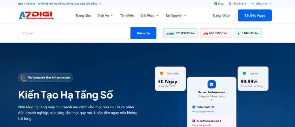 2. AZDIGI – Hosting tốt nhất Việt Nam cho WordPress